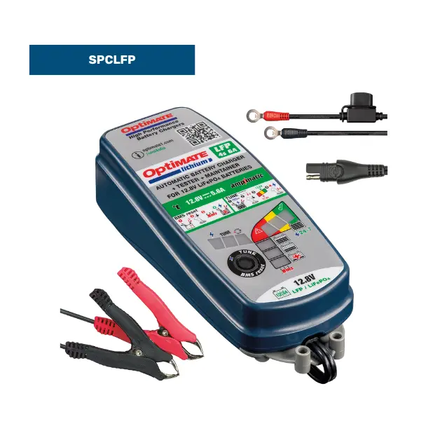 The SPCLFP 12.8 V 6 A Lithium Battery Charger is a reliable, fully automatic Lithium battery charger designed specifically for 12.8 V (nominal) LiFePO4 (LFP) batteries. With up to 6 A charging current and a 10-step AmpMatic charging program, it safely revives deeply discharged batteries (down to 0.5 V), maintains optimal state‑of‑charge, checks battery health, and adjusts current to match battery size (3–72 Ah). Weatherproof with full electronic protection, the charger is safe to leave connected indefinitely. It supports tuning and ECU programming with stable 13.6 V auxiliary output.
